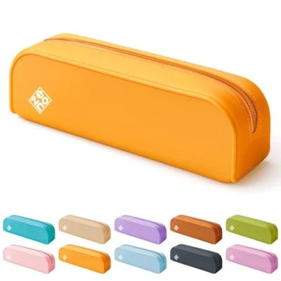 ZENO Silicone Pencil Case Aesthetic Pouch for Women & Teens Cute Pen Case, Yellow Make Up Bag, Travel Organiser, Small Stationery Pouch, School Honey Beach