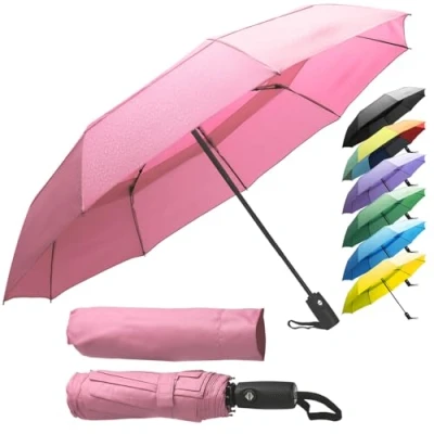 Compact & Travel-Friendly Only 29.5 cm folded, this umbrella fits easily in your backpack, handbag, or car while opening to a wide 106 cm canopy for full rain protection. Windproof & Reinforced Designed with 9 fiberglass ribs that flex without breaking, this travel umbrella withstands strong winds and heavy rain. Automatic Open & Close One-touch button for quick, one-handed operation—open or close your umbrella in seconds, even when carrying bags. Water-Repellent Teflon Premium Teflon coating ensures fast drying, prevents water absorption, and keeps your umbrella lightweight after use. Durable & Stylish A long-lasting umbrella available in classic black and vibrant colors, making it both a reliable shield and a sleek accessory.