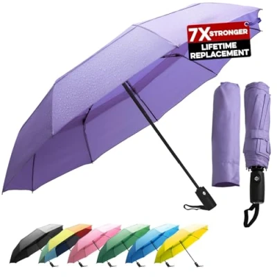 Compact & Travel-Friendly Only 29.5 cm folded, this umbrella fits easily in your backpack, handbag, or car while opening to a wide 106 cm canopy for full rain protection. Windproof & Reinforced Designed with 9 fiberglass ribs that flex without breaking, this travel umbrella withstands strong winds and heavy rain. Automatic Open & Close One-touch button for quick, one-handed operation—open or close your umbrella in seconds, even when carrying bags. Water-Repellent Teflon Premium Teflon coating ensures fast drying, prevents water absorption, and keeps your umbrella lightweight after use. Durable & Stylish A long-lasting umbrella available in classic black and vibrant colors, making it both a reliable shield and a sleek accessory.