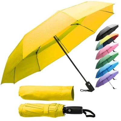 Compact & Travel-Friendly Only 29.5 cm folded, this umbrella fits easily in your backpack, handbag, or car while opening to a wide 106 cm canopy for full rain protection. Windproof & Reinforced Designed with 9 fiberglass ribs that flex without breaking, this travel umbrella withstands strong winds and heavy rain. Automatic Open & Close One-touch button for quick, one-handed operation—open or close your umbrella in seconds, even when carrying bags. Water-Repellent Teflon Premium Teflon coating ensures fast drying, prevents water absorption, and keeps your umbrella lightweight after use. Durable & Stylish A long-lasting umbrella available in classic black and vibrant colors, making it both a reliable shield and a sleek accessory.