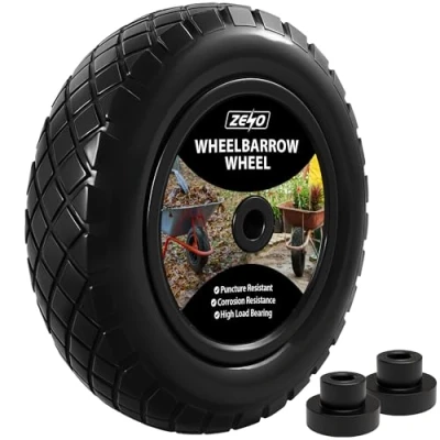 PUNCTURE PROOF DESIGN FOR ZERO MAINTENANCE - Say goodbye to flats with this solid rubber tyre. It’s 100% puncture proof, so you never need to worry about pumping or pressure loss again, perfect for tough garden or construction work. HEAVY DUTY BUILD THAT HANDLES ANY LOAD - Built to carry heavy loads across all terrains, the reinforced steel centre and thick rubber construction provide excellent weight support and long-term durability for all your outdoor tasks. UNIVERSAL FIT FOR EASY INSTALLATION - This 14-inch wheel fits most standard wheelbarrows, garden trolleys, and carts. It installs quickly with no fuss, getting you back to work in minutes. SMOOTH ROLLING ACROSS ANY TERRAIN - Tackle gravel, mud, grass, or concrete with ease. The grooved tread ensures excellent grip and traction, keeping your wheelbarrow stable even on uneven ground. THE ULTIMATE REPLACEMENT WHEELBARROW WHEEL - Whether for home gardening or professional landscaping, this reliable solid tyre is the go-to upgrade for anyone needing a high-performance, long-lasting wheel.