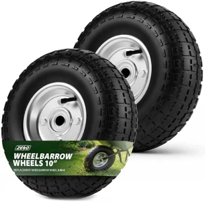 ZENO Wheelbarrow Wheels 2 x 10" Pneumatic Set Truck Trolley Puncture Proof Tyre for Garden Heavy Duty Trailer Black Solid Replacement Wheel 3.50 4