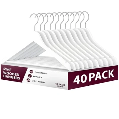ZENO Wooden Hangers White 40 Pack Coat for Clothes With 360 Swivel Hook Shoulder Notches Lightweight Durable