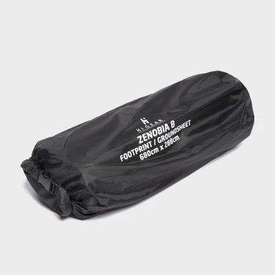 BlacksThis is an under-groundsheet layer for the Zenobia 8 Tent which keeps your groundsheet clean and protected from abrasion, rips and tears that may occur on rough ground. The footprint should be covered completely by the tent to prevent rain from pooling underneath your groundsheet. Reliable foundation for the Hi Gear Zenobia 8 Tent Dimension: 690cm x 288cm Comes in a carry sack