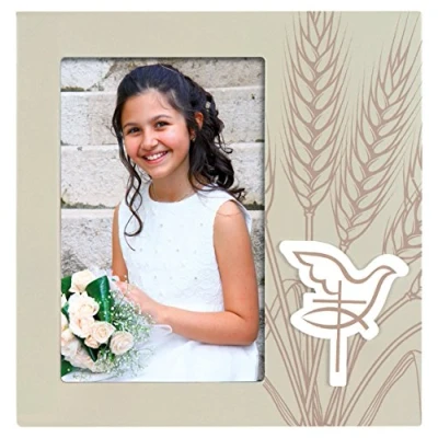 Confirmation photo frame with Dove and Cross decoration holds one 10x15cm photo designed for table top display