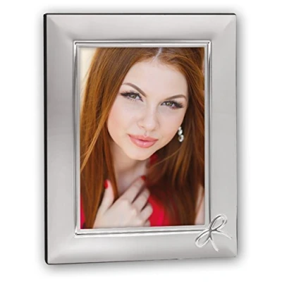Silver plated photo frmae with bow decoration holds one 15x20cm photo designed for table top display