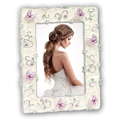Luxury highly decorative metal photoframe velvet back and rear strut for table top display holds one 10x15cm photo