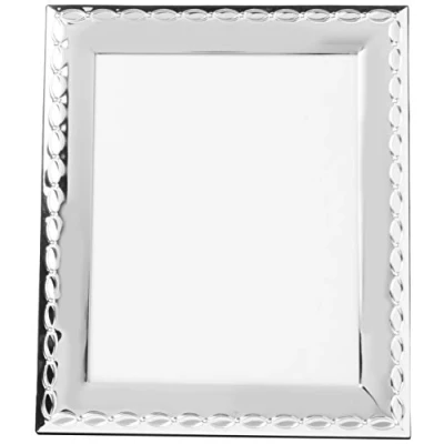 Silver plated photo frame with decorated border and velvet back holds one 20x25cm photo designed for table top display