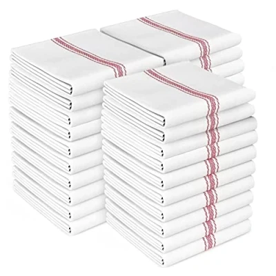 Zeppoli Classic Dish Towels 30 Pack 14" by 25" 100% Cotton Kitchen Reusable Bulk Cleaning Cloths Red Hand Super Absorbent Machine Washable