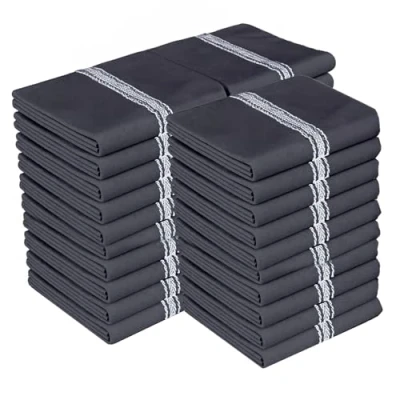 Zeppoli Classic Kitchen Towels 15 Pack 14" x 25" 100% Natural Cotton Dish Reusable Cleaning Cloths Tea Super Absorbent Machine Washable Hand Black Base