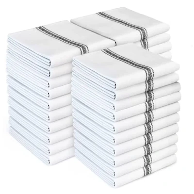 Zeppoli Classic Kitchen Towels 30 Pack 100% Cotton Dish Reusable Cleaning Cloths Black Super Absorbent Machine Washable Hand 14 x 25 (Black Striped)