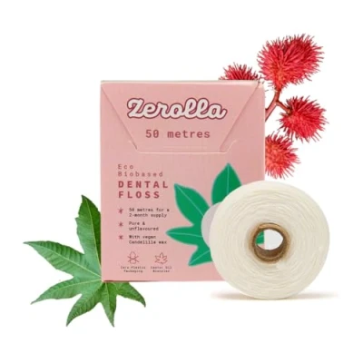 Zerolla Eco Biobased Dental Floss 50 metre Friendly Sustainable Nylon Made from Castor Oil Tooth Plaque Remover All Natural in Recyclable Plastic Free Zero Waste Packaging