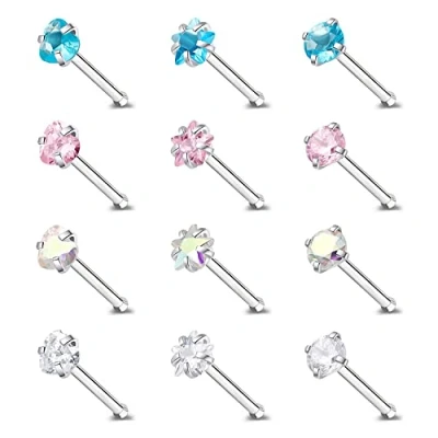 ZeSen Jewelry 9 12pcs 20g Surgical Stainless Steel Nose Studs,