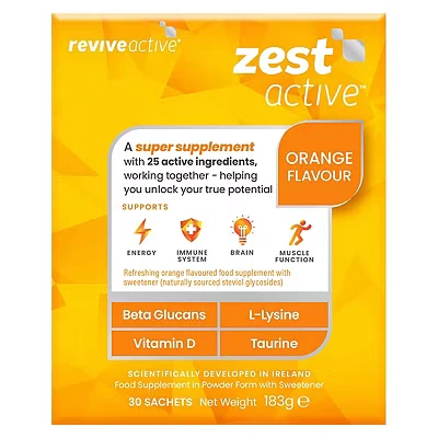87 Advantage card points. Revive Active Zest Active with Beta Glucans, L-lysine, Multivitamins & Taurine - 1 Month Supply, 30 Sachets FREE Delivery on orders over 45 GBP.