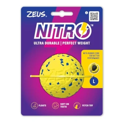 This dog ball is built with a natural rubber core for powerful, long-distance throws Crafted from tough NITRO materials that stay gentle on your dog's teeth and gums The dog ball will retain its high bounce for non-stop, exciting play sessions Available in three sizes to suit all small, medium and large dogs Easy to clean and fully dishwasher-safe for hassle-free maintenance