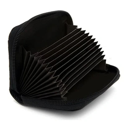 ZHOMA RFID Blocking Genuine Leather Credit Card Case Holder Security Travel Wallet Black, S, Zippered