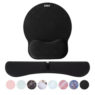 ZIBLY Keyboard wrist rest and Mouse mat support, Comfortable Memory Foam pad support cushion with Anti Slip Grip for Office Computer Laptop Working Gaming (Black Combo)
