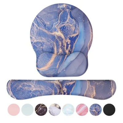 Zibly Keyboard Wrist Rest and Mouse mat Support, Comfortable Memory Foam pad Support Cushion with Anti Slip Grip for Office Computer Laptop Working Gaming (Combo Blue Marble)