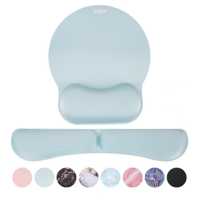 ZIBLY Keyboard wrist rest and Mouse mat support, Comfortable Memory Foam Pad support cushion with Anti Slip Grip for Office Computer Laptop Working Gaming (Wrist Blue)