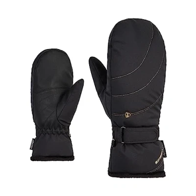 Ziener Kahlia-Z PR women's ski mittens combine straightforward protection with a focus on warmth and comfort for cold alpine days. Designed as part of the Ziener Alpine Lady Gloves range, these mittens prioritise insulation and a neat, functional fit. The insulated construction uses PrimaLoft Gold insulation and Thermoshield technology to trap heat while keeping weight low. The outer fabric has a water repellent coating and windproof properties to help block snow and cold gusts, while internal padding and a soft plush lining maintain comfort across long days on the slopes. A plush fur finishing at the wrist adds a touch of comfort and helps seal out draughts. Cuff adjustment allows the mittens to be secured over or inside a jacket sleeve for better snow protection and a customised fit. Materials include polyester and recycled polyester, and the product is finished without PFCs, reflecting a reduced environmental impact where possible. These mittens are best suited to skiers who value thermal performance and simplicity, offering the greater warmth of a mitten construction while retaining enough manoeuvrability for everyday resort skiing. Technical features include Thermoshield technology, PrimaLoft Gold insulation, water repellent outer, windproof fabric, plush lining, padding and adjustable cuffs.