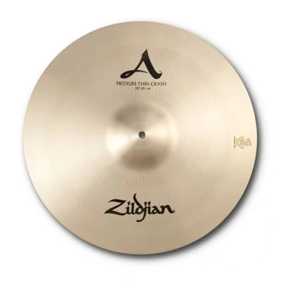 The Zildjian Medium Thin Crash cymbals produce a bright, stronger high end than the standard Zildjian Thin Crash Projects volume with a bright/mid sound Projects sound with a long sustain Medium thin weight Traditional Finish