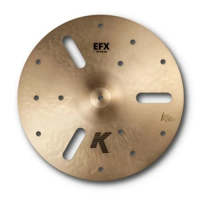The K Zildjian 16" K EFX cymbal is a darker version of the A Custom EFX Produces a quick, dry, dark, and trashy sound used for accenting and punctuating The unique laser generated "cut outs" aid in the sudden explosiveness and quick decay Traditional K finish and thin weight. Short sustain UT with plenty of volume