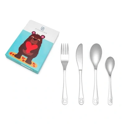 4-piece Stainless steel 18/10 Bear with heart In colourful gift-wrapping Dishwasher safe