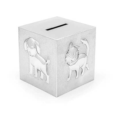 Features images of pets For the first piggy pigs Ideal as a birthday gift Silvery Can be engraved