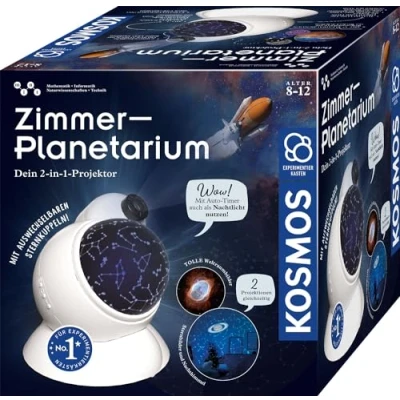 With the "room planetarium" from Kosmos, explore the starry sky and celestial objects easily in the children's room and use as a soothing night light thanks to the auto timer and rotation function of the dome. 32 stunning space images on four interchangeable discs and three domes with star maps of the north and south sky provide variety. The two projectors throw two images on the ceiling at the same time, so children can combine the star maps and space objects again and again. The instructions include exciting facts about celestial bodies and the universe as well as practical tips for observing the sky outside. Whether for exploring infinite expanses or as a night light: the Kosmos room planetarium with practical USB port is suitable for all astronomy enthusiasts aged 8 and over., Manufacturer: KOSMOS
