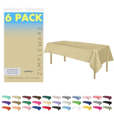 ZIMPLEWARE Premium Beige Plastic Table Cloth Disposable (6 Pk) Tablecloths for Rectangle Tables (54in x 108in) Party Cloths 6ft to 8ft