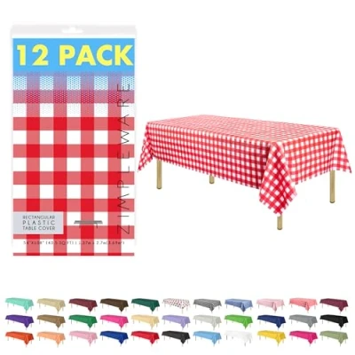 High-Quality Material: Our Zimpleware Premium Disposable Red Gingham Checkered Plastic Tablecloth offers the perfect blend of luxury and convenience. Made from durable fade and tear-resistant plastic, this red gingham checkered plastic table cloth rectangle is designed to withstand spills and stains. Size and Compatibility: 54" x 108" - provides full coverage for tables up to 8 ft. They are ideal red gingham checkered disposable tablecloths for 6 foot rectangle tables and red gingham checkered disposable table cloths for 8 foot rectangle tables. You can also cut them to fit a smaller table! Convenient and Practical: These Aqua rectangle disposable tablecloths effectively contain spills from food, drinks, and paint from crafts. Best of all, they are completely disposable, making post-party cleanup a breeze. Enjoy your event without worrying about the mess! Elegant Design: Each rectangle tablecloth plastic is decorative and adds a touch of elegance to your event. Unleash your creativity! Our plastic tablecloths come in a wide array of colors and styles to match any party theme or mood. Perfect for creating a festive atmosphere. Multipurpose Use: Whether you need a disposable table cover for a birthday party, a picnic, or a holiday celebration, these plastic tablecloths are a perfect choice. They can be used as a table cloth rectangle table disposable for any occasion. And save with our bulk tablecloths ensuring you are prepared for any event.