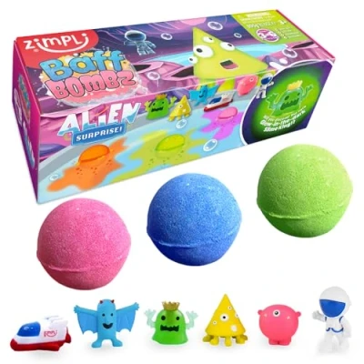 BIRTHDAY GIFTS: Check out other Christmas styles in the Zimpli Kids store WHAT YOU WILL RECEIVE: 3 x 100g Large Bath Bomb each with Alien Toy inside OTHER STYLES: Other bath bomb styles available including Unicorn, Dinosaur, Fruity, Care Bears and Miraculous CHRISTMAS GIFTS: Christmas style bath bombs available including Santa, Gingerbread and Christmas Ducks SAFE: All Zimpli Kids Baff Bombz are skin safe, drain safe, easy clean and stain free and are not tested on animals IDEAL GIFT FOR KIDS: Our Surprise Bath Bombs are the perfect Birthday, Christmas present for Children, Manufacturer: Zimpli Kids