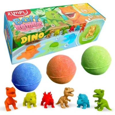 KIDS GIFTS: Check out other kids toys in the Zimpli Kids store WHAT YOU WILL RECEIVE: 1 x 100g Large Bath Bomb each with 1 x Dinosaur Toy inside OTHER STYLES: Other bath bomb styles available including Unicorn, Alien, Fruity, Care Bears and Miraculous CHRISTMAS GIFTS: Christmas style bath bombs available including Santa, Gingerbread and Christmas Ducks SAFE: All Zimpli Kids Baff Bombz are skin safe, drain safe, easy clean and stain free and are not tested on animals COLLECTABLE: The ideal pocket money collectible mystery toy for Boys and Girls, perfect Christmas, Birthday, Stocking Filler for kids, Manufacturer: Zimpli Kids