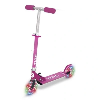Foldable Design for Easy Carry – The Zinc Twister Scooter is designed with a simple fold mechanism, making it easy for kids to carry and store. Perfect for on-the-go adventures, whether at the park or on family outings. Battery-Free LED Light-Up Wheels – Brighten up every ride with the Zinc Twister's wheels that light up with every movement. The LED wheels are powered by motion, so there's no need for batteries, ensuring hours of fun and eco-friendly play. Sturdy Aluminium Frame for Durability – Made from high-quality aluminium, this scooter is built to withstand the rough and tumble of kids' play while remaining lightweight and easy to handle. Suitable for children aged 3 and above. Safe and Smooth Ride – The two large inline wheels provide a smooth and safe ride on a variety of surfaces. Plus, the rear foot brake ensures quick and easy stops, giving parents peace of mind as their children zoom around. Adjustable height options of 70, 75 and 80 cm Perfect Gift for Young Adventurers – Whether for birthdays, Christmas, or any special occasion, the Zinc Twister Scooter is an exciting gift choice. Available in vibrant pink and blue colours, it’s sure to impress both boys and girls.