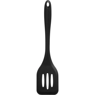 General description This black silicone slotted turner features a large paddle that allows for easy draining of liquids or oils while flipping food. Its design is perfect for use with nonstick cookware, ensuring that scratches are prevented. Technical specifications Material: Silicone Color: Black Usage Ideal for flipping and draining food. Suitable for nonstick cookware. Other information A hole in the handle allows for convenient hanging.