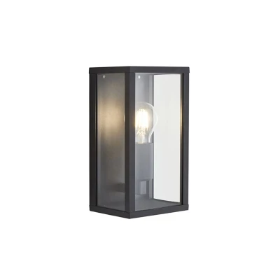 This contemporary CHINON outdoor wall lantern light from Zink's range of outdoor lighting will transform your exterior wall into a feature.A contemporary panel box lantern with a die cast aluminium frame complete with glass panels, these outdoor wall lights are both weatherproof and hard-wearing, designed to last against the elements.Exterior lighting provides increased safety and additional security while bringing a designer look to the exterior of your home at the same time.Outdoor wall lights are perfect for use in any outdoor space, such as exterior walls, front door lighting or garden wall lights creating an atmospheric lighting effect.Please note, this wall light requires 1 x GLS E27 (Edison screw cap) max 10W LED bulb (sold separately).An IP44 rating and dc alum/glass body with a sleek matt black finish means that you can install this high quality outdoor lighting product safe in the knowledge that it will operate reliably, whatever the weather.Complete mounting and connecting accessories included.Requires 1 x GLS E27 bulb max 10W LED (sold separately).