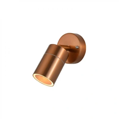 This stylish LETO outdoor spotlight is part of the Zink range of outdoor lighting.Sleek and stylish, these exterior wall lights are both weatherproof and hard-wearing, designed to last against the elements.With an adjustable head to shine the light where it needs to be, these outdoor wall lights are perfect for use in outdoor spaces to create architectural highlights, atmospheric lighting effects, or simply to create additional security for the exterior of your home.An IP44 rating and steel body with a sleek copper finish means that you can install this high quality garden wall light outdoors safe in the knowledge that it will operate reliably, whatever the weather.Easy to install, these adjustable spotlights come complete with mounting and connecting accessories included. Please note, this exterior light requires 1 x GU10 max 7W LED light bulb (sold separately).Requires 1 x GU10 bulb max 7W LED (sold separately).