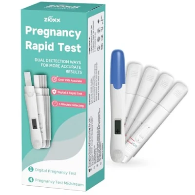 ZIOXX Digital Pregnancy Test Combo Pack, 1 + 4 Rapid Early Detection Sticks for Women, 6 Days Sooner and Over 99% Accurate Test, 5 Ct