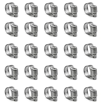 ZIPCCI Hose Clamp, 25 Pack Stainless Steel Worm Gear Fuel line Clamps, 10 16mm (3/8 5/8 inch)