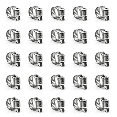 Package includes: 25 pieces 1/4 inch hose clamps. Hose clamp clamping range from 6 to 12mm (1/4 to 1/2 inch) 304 Stainless steel hose clamp provides maximum corrosion resistance to salt and most chemicals. Adjustable style hose clamp for a variety of applications for marine, auto, water pipes, fuel lines, etc.. Use a screwdriver to tighten or loosen the screw of hose clips then adjust the size, Secures pipe clamp tightly in place.