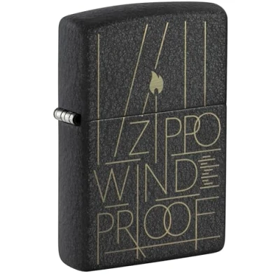 Black Zippo lighter in crackle design with golden lettering The classic from the USA, durable and reliable Refillable petrol lighter