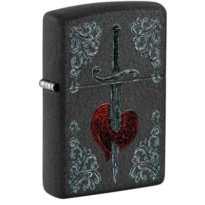 Zippo Heart Dagger Tattoo Design Black Crackle Pocket Lighter