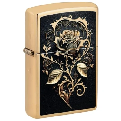 Zippo Golden Rose Design Windproof Lighter Perfect for fans of the cult brand with a stylish look that will be eye-catching every time you use it and just put you in a good mood in everyday life. Windproof & Reliable: Made from durable brass and with a windproof flame, this Zippo windproof lighter is the perfect companion in any weather. Whether camping, hiking or in everyday life, it ensures reliable ignition in any situation REFILLABLE, REUSABLE & WITH LIFETIME WARRANTY: Designed for long-lasting use: the refillable Zippo windproof lighter is a sustainable choice and comes unfilled. For optimal performance, we recommend original Zippo premium lighter fuel, flints and wicks. Zippo offers a lifetime warranty with the motto: "It works or we repair it for free." The legendary Zippo click & cult status: the unique Zippo click sound, known from movies, music and pop culture, received a patent in the USA in 2018 and highlights the cult status of this lighter. It is a symbol of tradition and quality PERFECT GIFT Whether it's for Christmas, birthday, anniversary or as a classy collector's item, this Zippo lighter is the ideal gift for men & women. Supplied in a high-quality gift box, it is a stylish highlight for lighter lovers