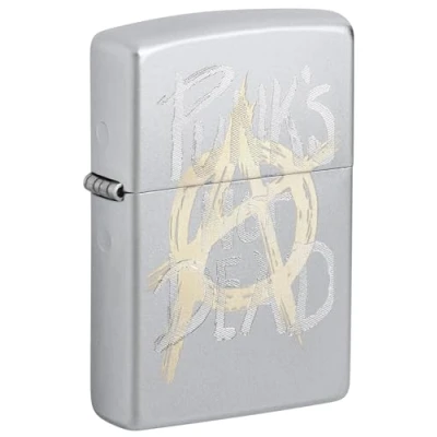 Zippo Windproof Lighter with the 'Punk’s Not Dead' design: the satin chrome finish showcases a rebellious laser engraving that captures the raw energy of the punk genre – perfect for true fans of its spirit Windproof & reliable: Made from durable brass and featuring a windproof flame, this Zippo Windproof Lighter is the perfect companion in any weather. Whether camping, hiking, or in everyday life – it ensures a reliable ignition in any situation Refillable, reusable & with a lifetime warranty: designed for lasting use, the refillable Zippo Windproof Lighter is a sustainable choice and comes unfilled. For optimal performance, we recommend original Zippo premium lighter fluid, flints, and wicks. Zippo offers a lifetime warranty with the motto: "It works or we fix it for free" The legendary Zippo click and its cult status: The iconic Zippo click, celebrated in films, music, and pop culture, was patented in the USA in 2018, cementing the windproof lighter's cult status. A true symbol of tradition and quality The perfect gift: Whether for Christmas, a birthday, an anniversary, or as a luxury collectible, this Zippo lighter makes the ideal gift for both men and women. Presented in a premium gift box, it’s a stylish highlight for any lighter enthusiast