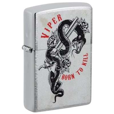 Zippo Lighter: Viper Snake, Born to Kill Brushed Chrome 48650
