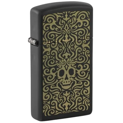 Zippo Skull Filigree Design Slim Black Matte Pocket Lighter
