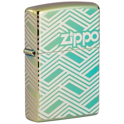 Zippo Windproof Lighter, Abstract Laser Design High Polished Teal, 360 Refillable, Reusable, Comes in Gift Box Made USA