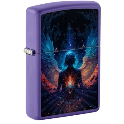 Zippo Windproof Lighter Angel, Purple Mat, Black Light Refillable Reusable Design Gift Box Made in USA