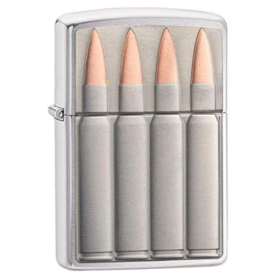 Zippo Windproof Lighter, Bullets Emblem, Brushed Chrome, Refillable, Reusable, Design, Gift Box, Made in the USA