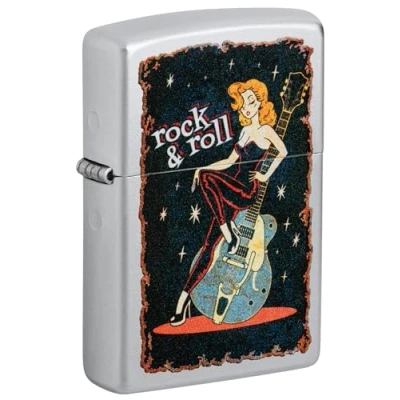 Zippo Windproof Lighter, Cool Chick Design Satin Chrome, Colour Image Refillable, Reusable, Comes in Gift Box Made USA